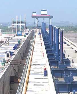 公司專業(yè)生產(chǎn)的各類平面、弧型閘門,各類卷揚、門式、移動式啟閉機(jī),各類清污機(jī)、攔污柵、升船機(jī)、壓力鋼管、錐形閥等超大型、大型水工金屬結(jié)構(gòu)件和各類起重機(jī)遠(yuǎn)銷全國26個省、市、自治區(qū),并出口到16個國家和地區(qū),廣泛應(yīng)用于全國重點工程建設(shè),如長江三峽永久性船閘工程、淮河蚌埠閘擴(kuò)建工程、浙江溫州珊溪水利樞紐工程、四川岷江紫坪鋪水利樞紐工程、浙江省分水江水利樞紐工程、中國河口第一大閘曹娥江攔河大閘和港口、船舶制造企業(yè)等。